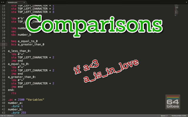 In this episode we'll learn the remaining Z flag along with it's BEQ and BNE instructions. We'll also try to compare arbitrary numbers using subtraction and CMP command, which only seems to be stra... Read more →