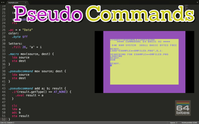 Today we'll learn about .pseudocommand directive in KickAssembler. It allows us to make more robust macros that can work with different addressing modes and behave like a built in assembly instruct... Read more →
