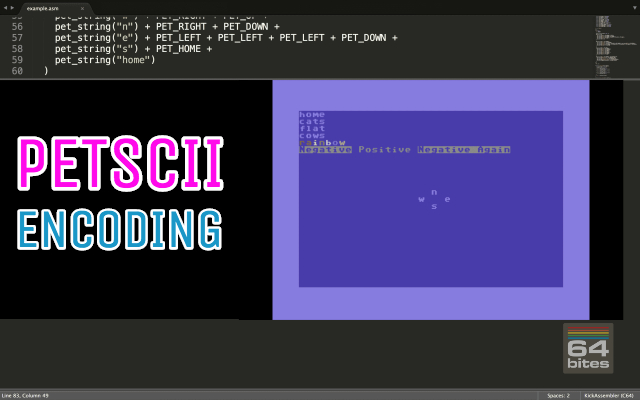 Today we will talk about the PETSCII character encoding. We'll learn how to use the control characters, master the conversion from screencodes, and figure out how to use it effectively from the Kic... Read more →