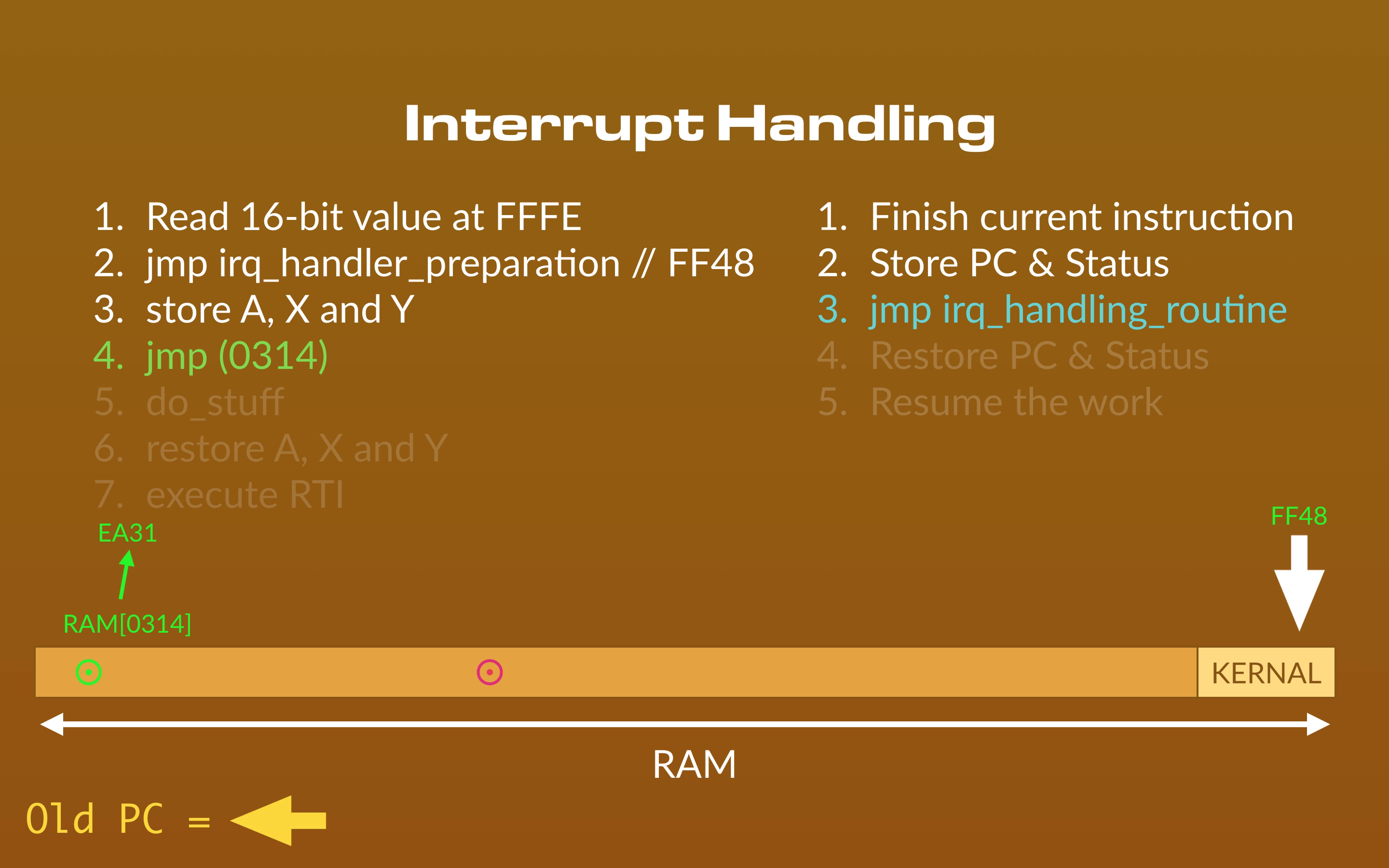 In a previous episode, we've learned how to insert a routine at the beginning of the IRQ handler. In the most typical situation, we just need to store our routine address in the place in RAM called... Read more →
