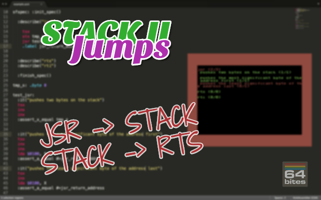 The 6502 stack is not only useful as a temporary storage for data in assembly programs. It is also used internally by the processor in three jump instructions: jsr, rts and rti. Knowing this allow... Read more →