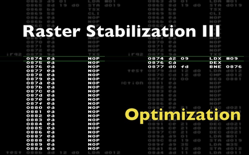 Because of the way the 6510 processor works the raster interrupt handlers might experience a random delay in execution. The variance is usually called the jitter and it can take up to seven or eve... Read more →